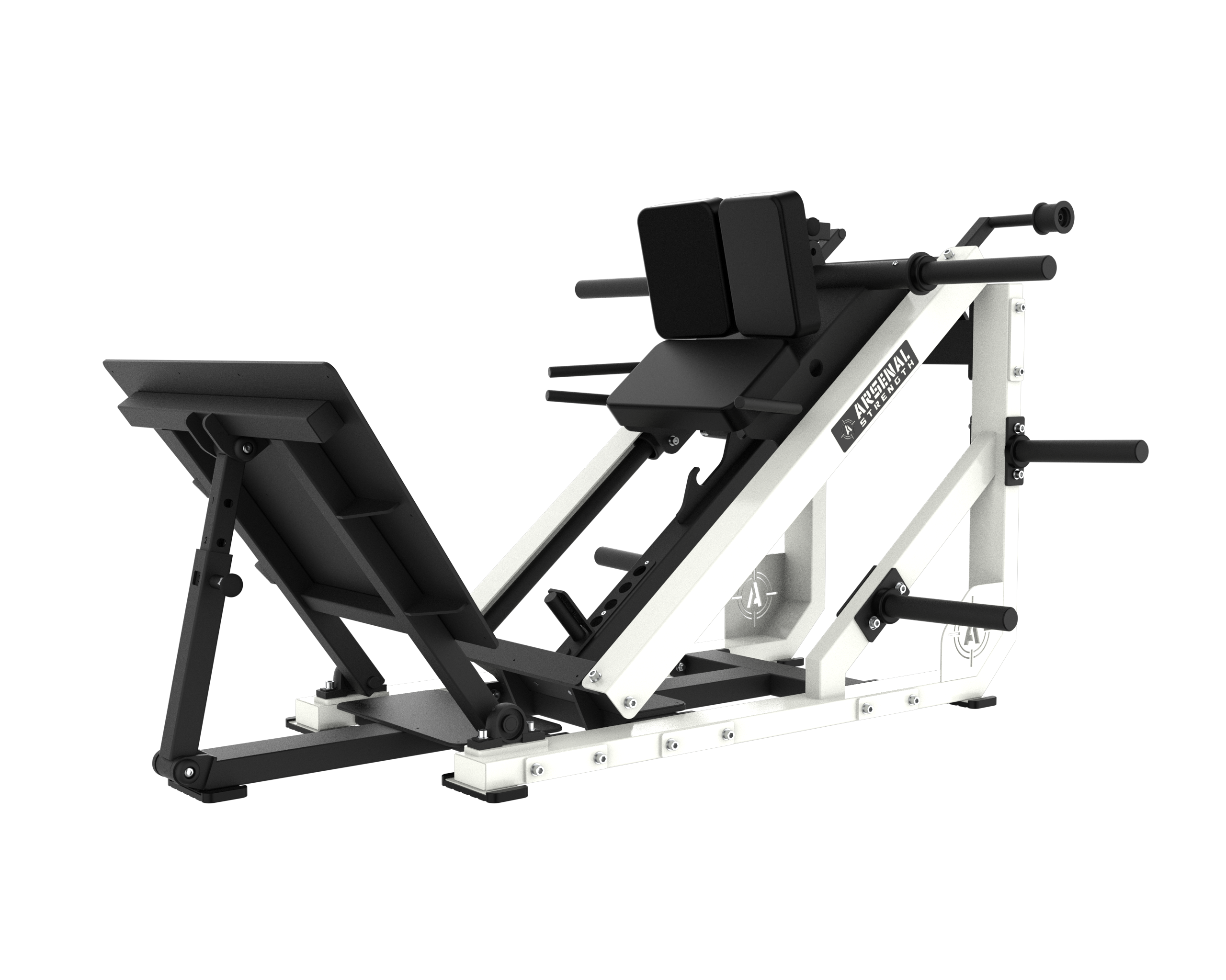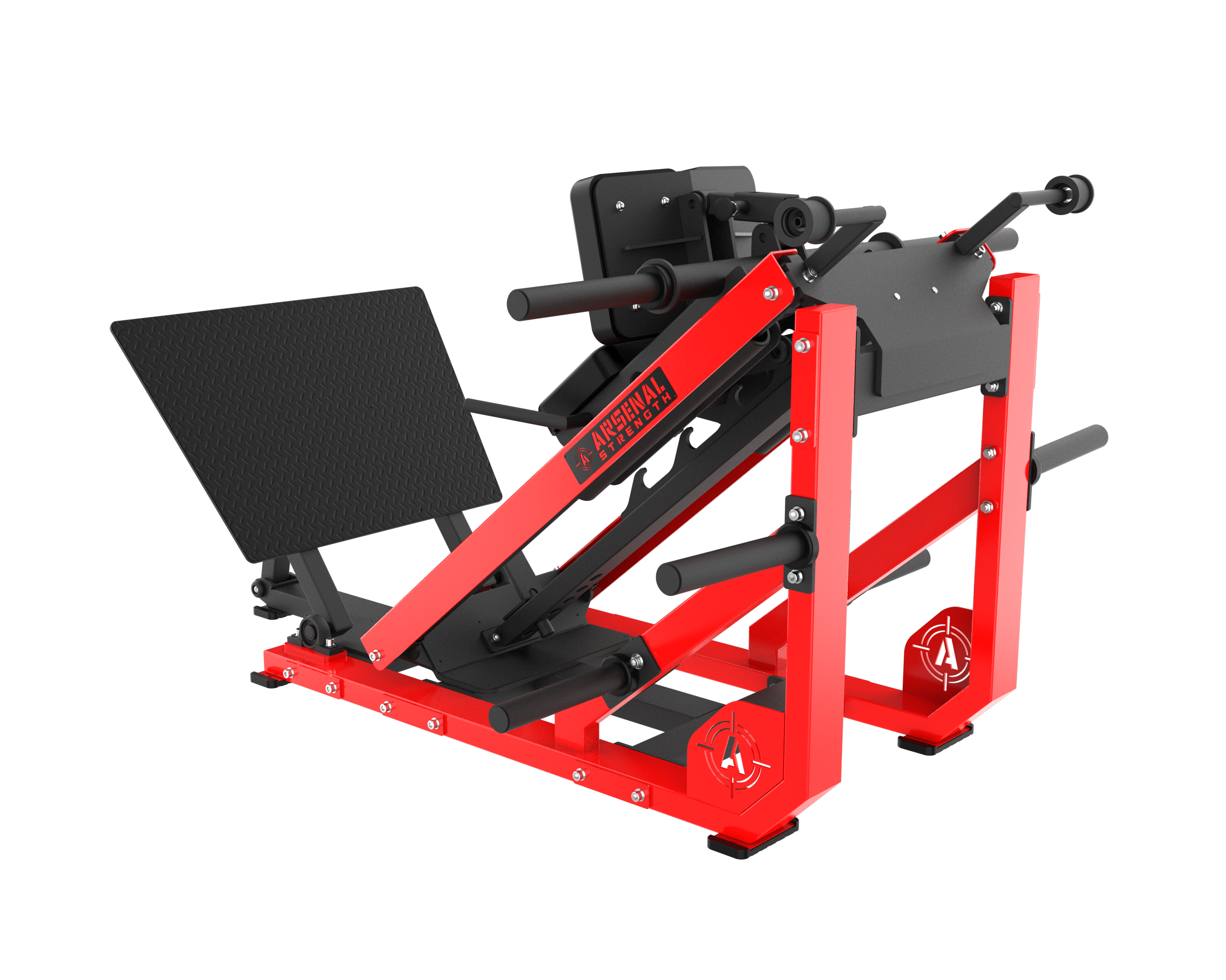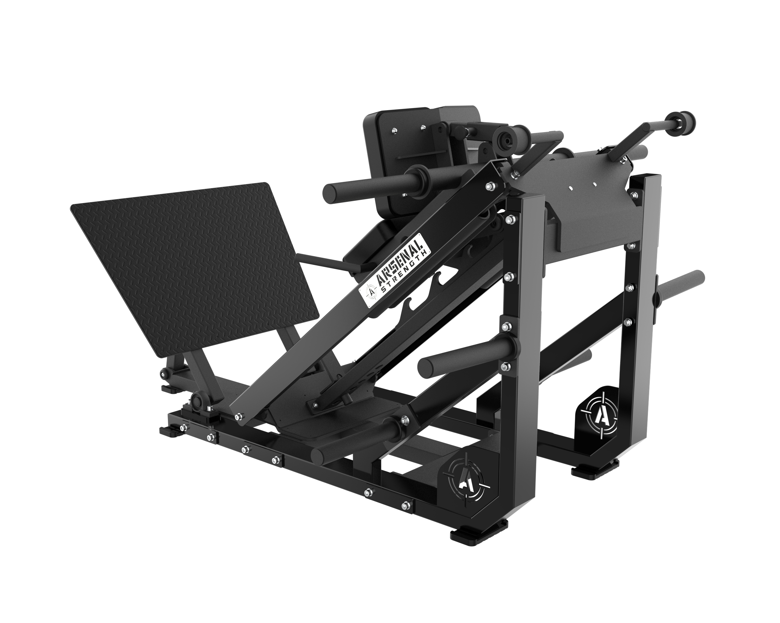 The AR-HHP Hip Hack Press combines comfort, control, and power for lower-body training that hits differently. Featuring a hip-supported user position, this machine delivers optimal alignment and reduced spinal loading, letting athletes drive through each rep safely and efficiently. The large adjustable-angle platform allows for precise foot placement and varied training emphasis, from quads to glutes. A smooth, ergonomic rack and unrack mechanism keeps transitions effortless, while multiple start positions ensure proper setup for users of all heights. With standard integrated weight storage, the Hip Hack Press keeps the training zone clean and organized—making it as functional as it is powerful.