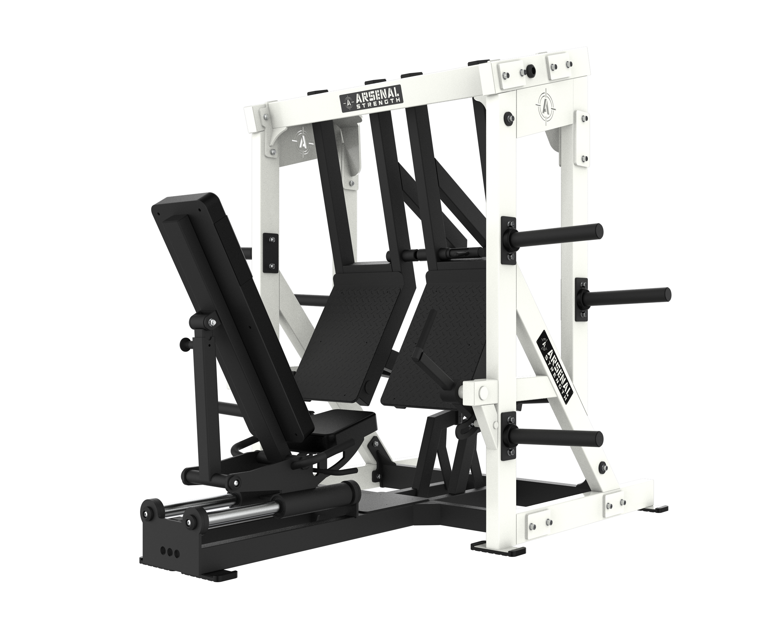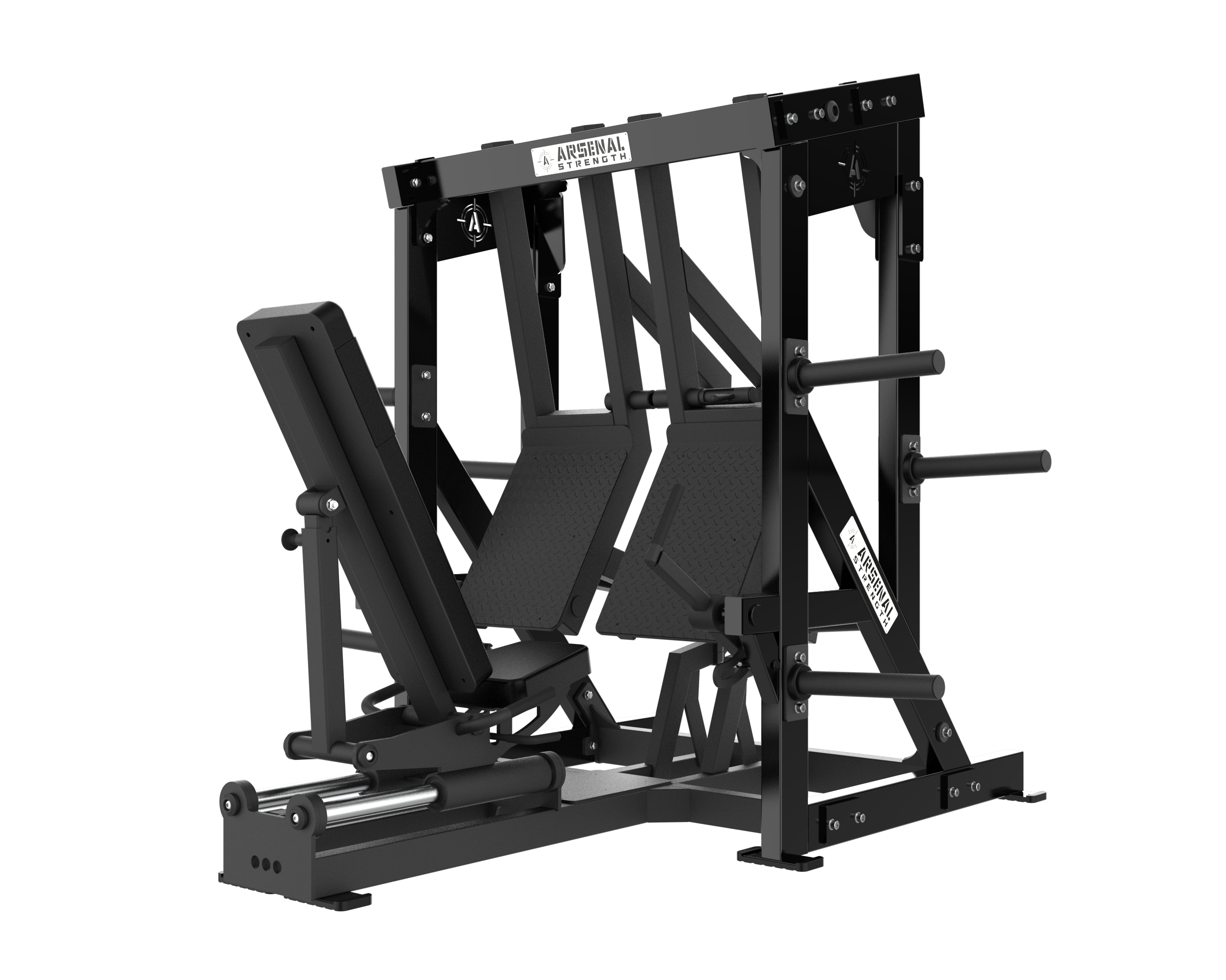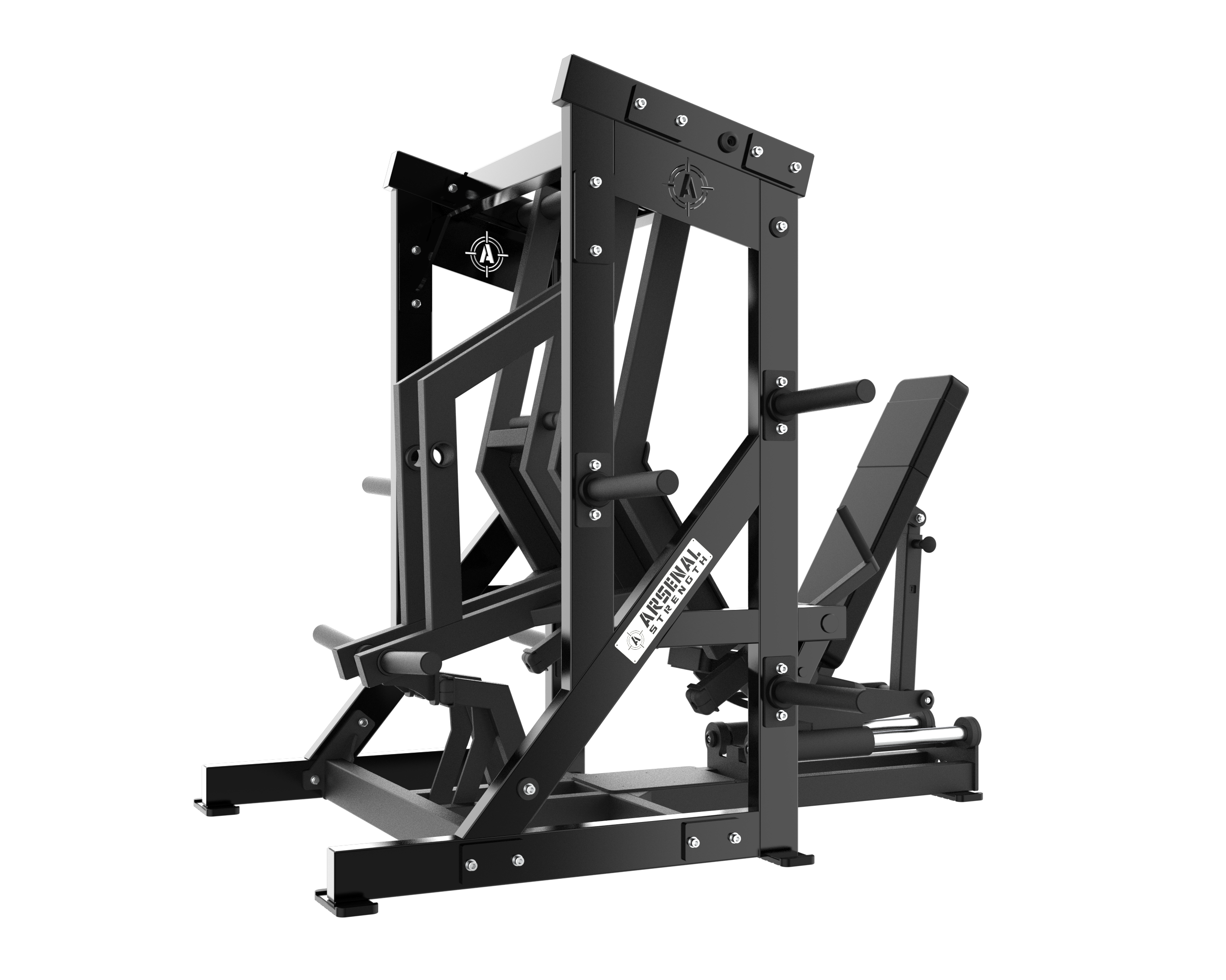The AR-HLP Horizontal Leg Press is built for serious strength training with a smooth, natural feel and unmatched versatility. Featuring an adjustable range of motion, it allows users to fine-tune depth and tension for any training style. The adjustable-angle back pad supports proper alignment and comfort, while the large individual foot platforms give athletes the freedom to target muscles through a variety of foot placements. A locking mechanism enables both isolateral and bilateral movements, creating balanced leg development and precise muscle activation. With ample integrated weight storage and an ergonomic rack/unrack mechanism, the AR-HLP delivers a seamless, powerful training experience worthy of the Arsenal name.