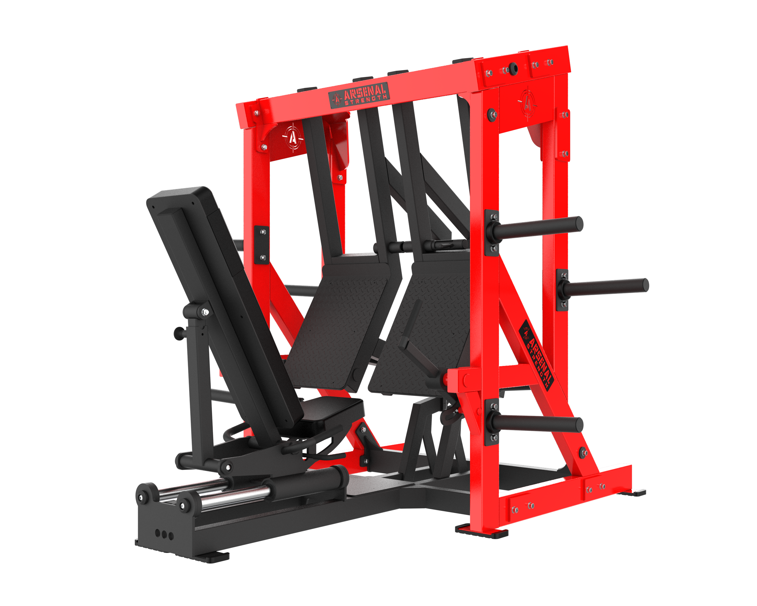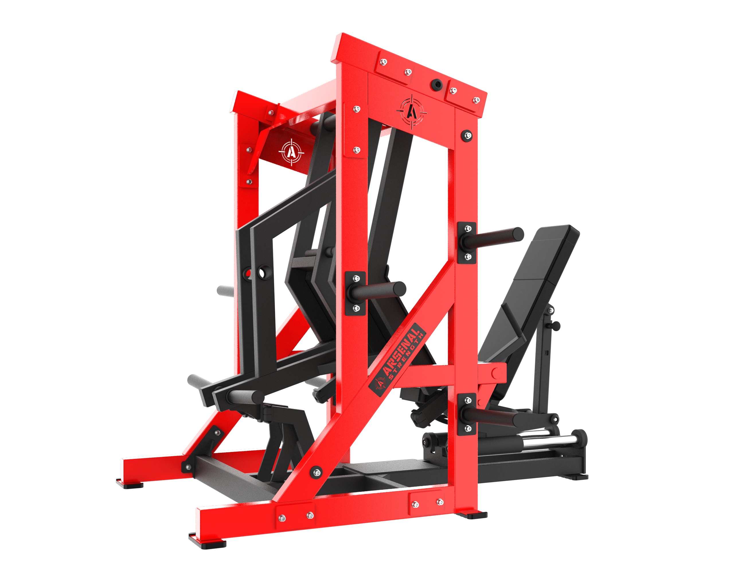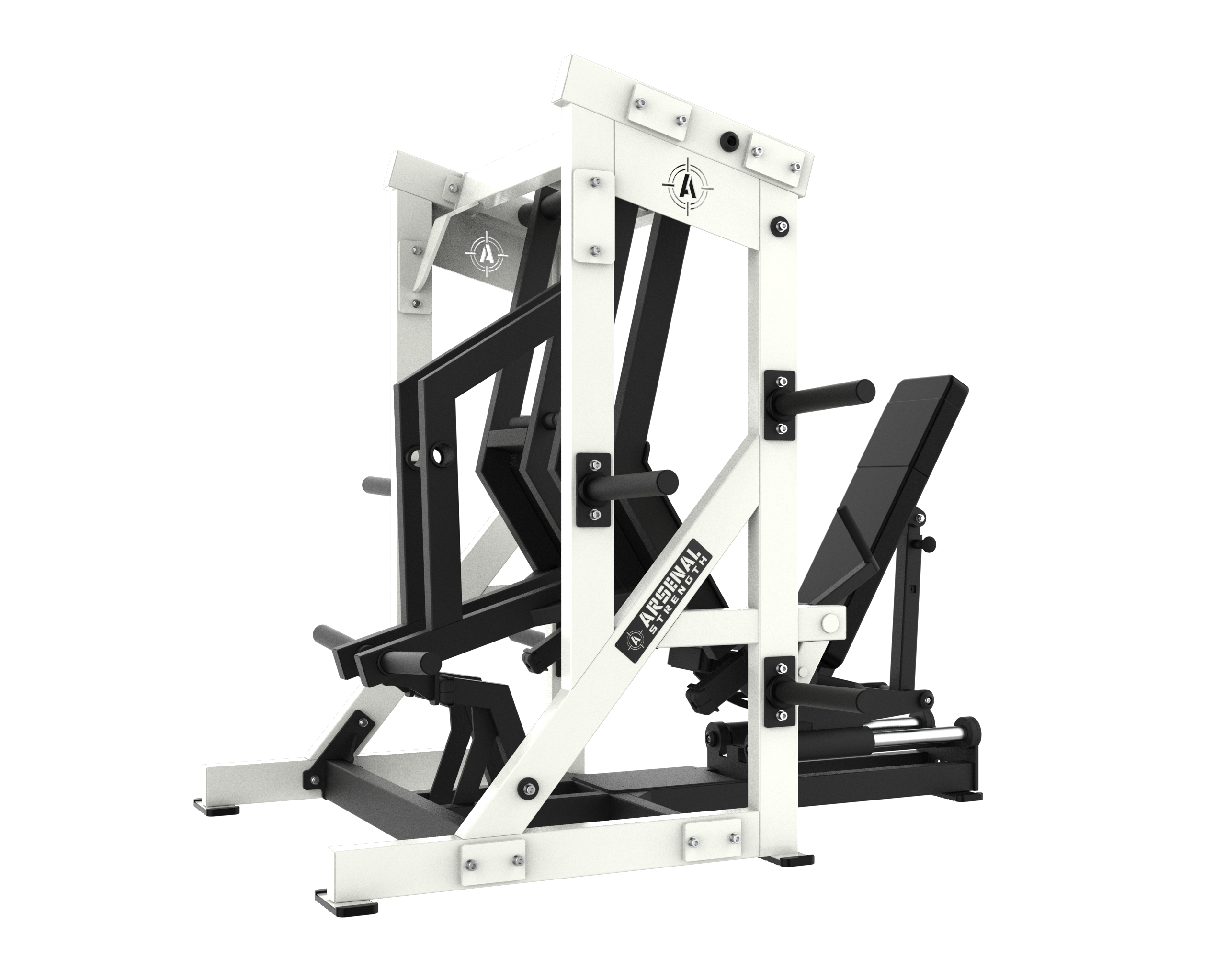 The AR-HLP Horizontal Leg Press is built for serious strength training with a smooth, natural feel and unmatched versatility. Featuring an adjustable range of motion, it allows users to fine-tune depth and tension for any training style. The adjustable-angle back pad supports proper alignment and comfort, while the large individual foot platforms give athletes the freedom to target muscles through a variety of foot placements. A locking mechanism enables both isolateral and bilateral movements, creating balanced leg development and precise muscle activation. With ample integrated weight storage and an ergonomic rack/unrack mechanism, the AR-HLP delivers a seamless, powerful training experience worthy of the Arsenal name.