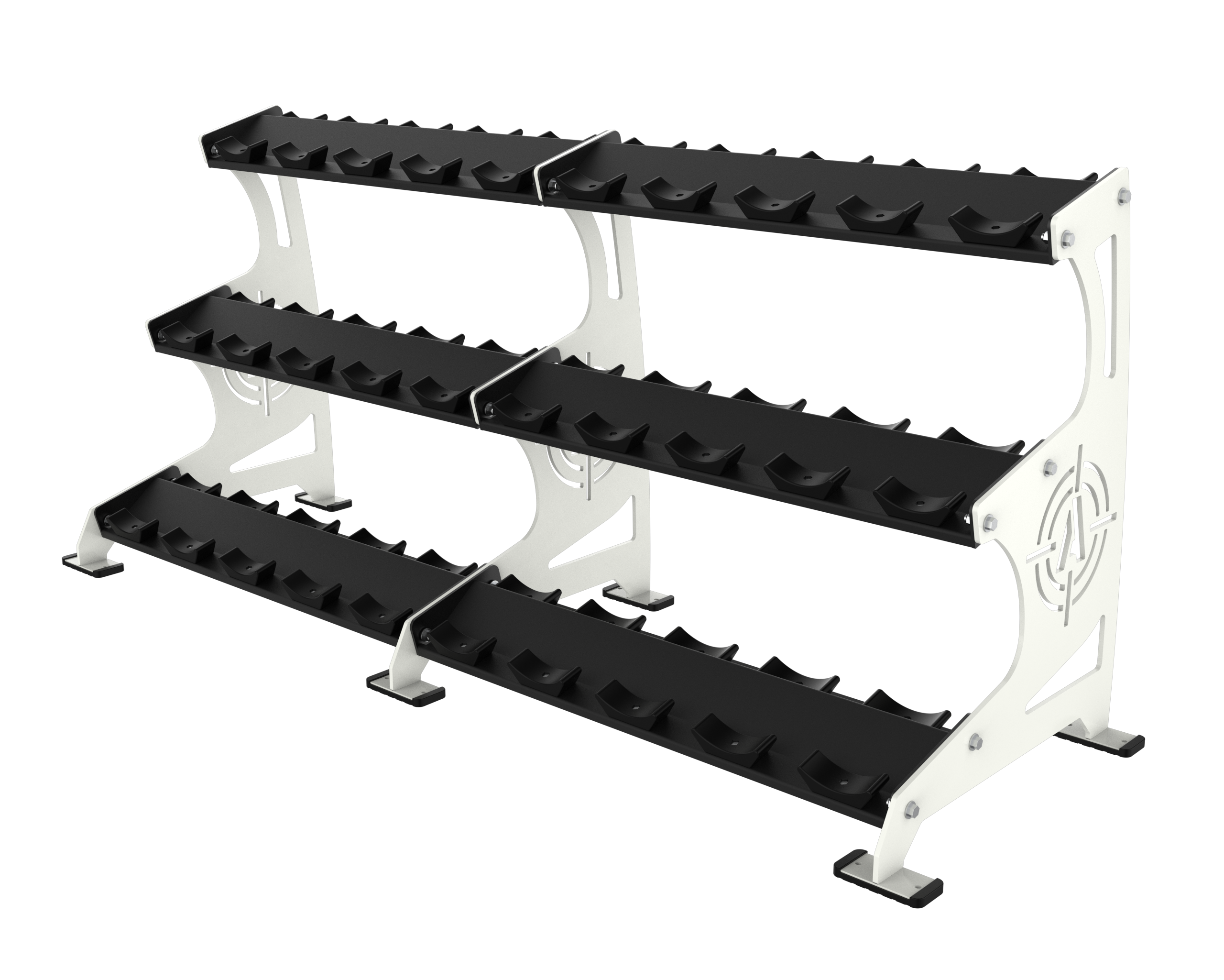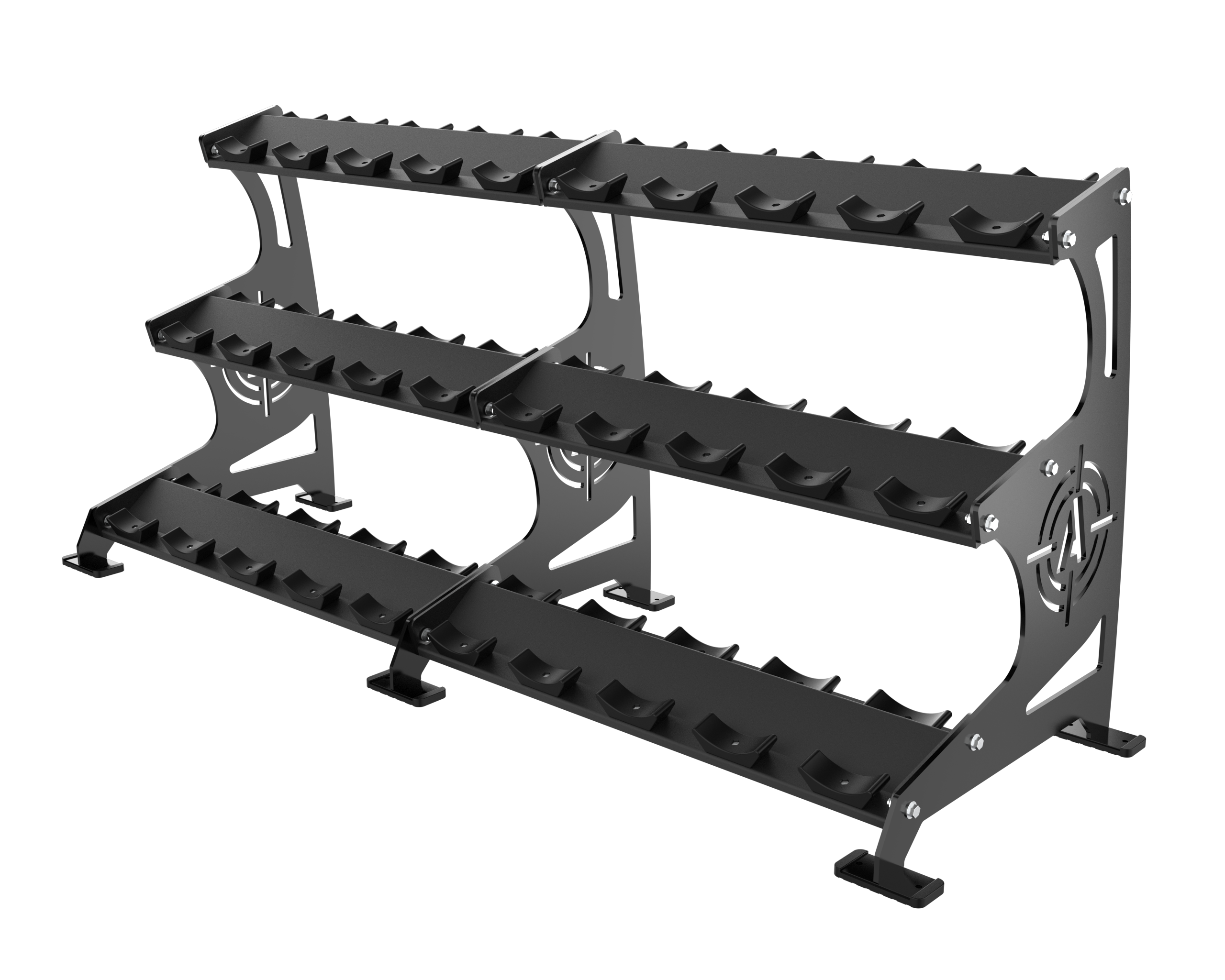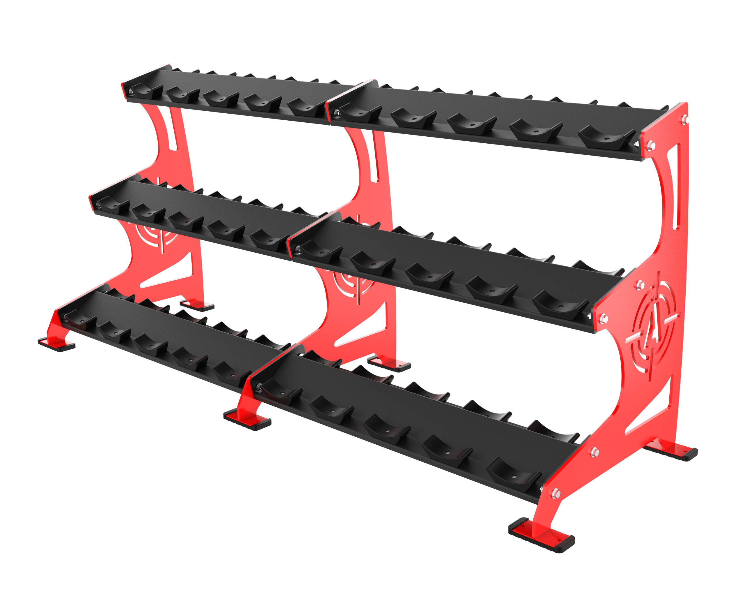 The Arsenal Strength Alpha Series 3 Tier Dumbbell Rack provides a proper storage solution for your dumbbells. The rack provides storage for 15 pairs of dumbbells.