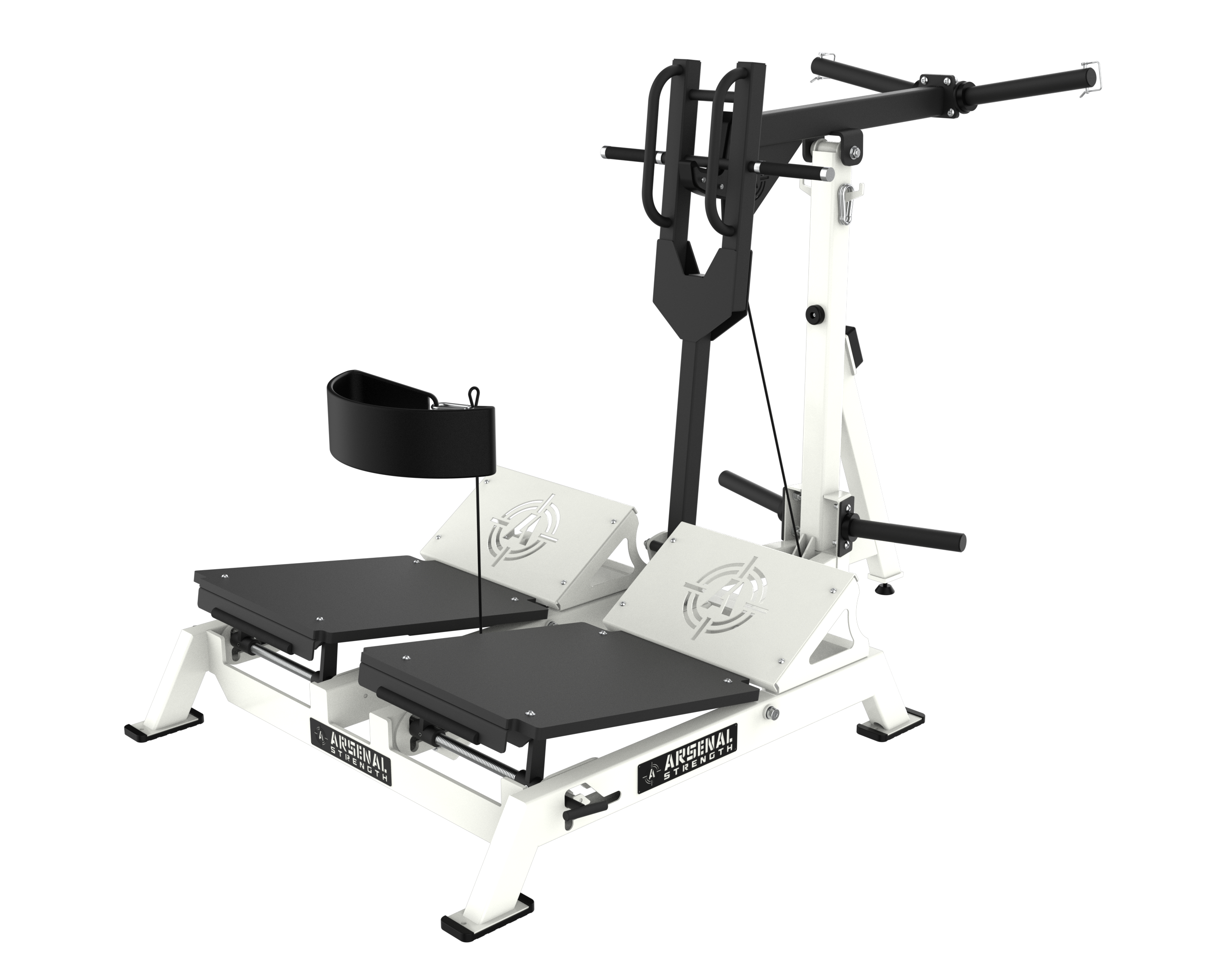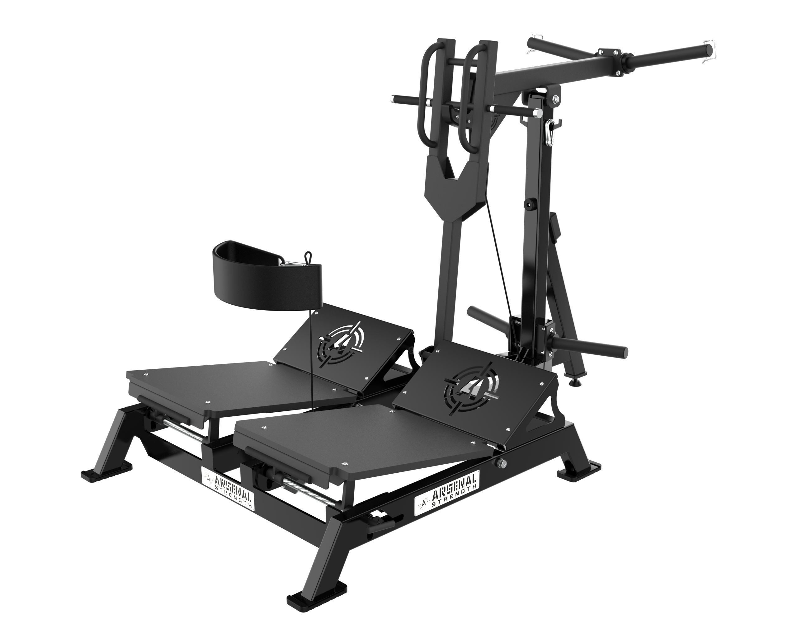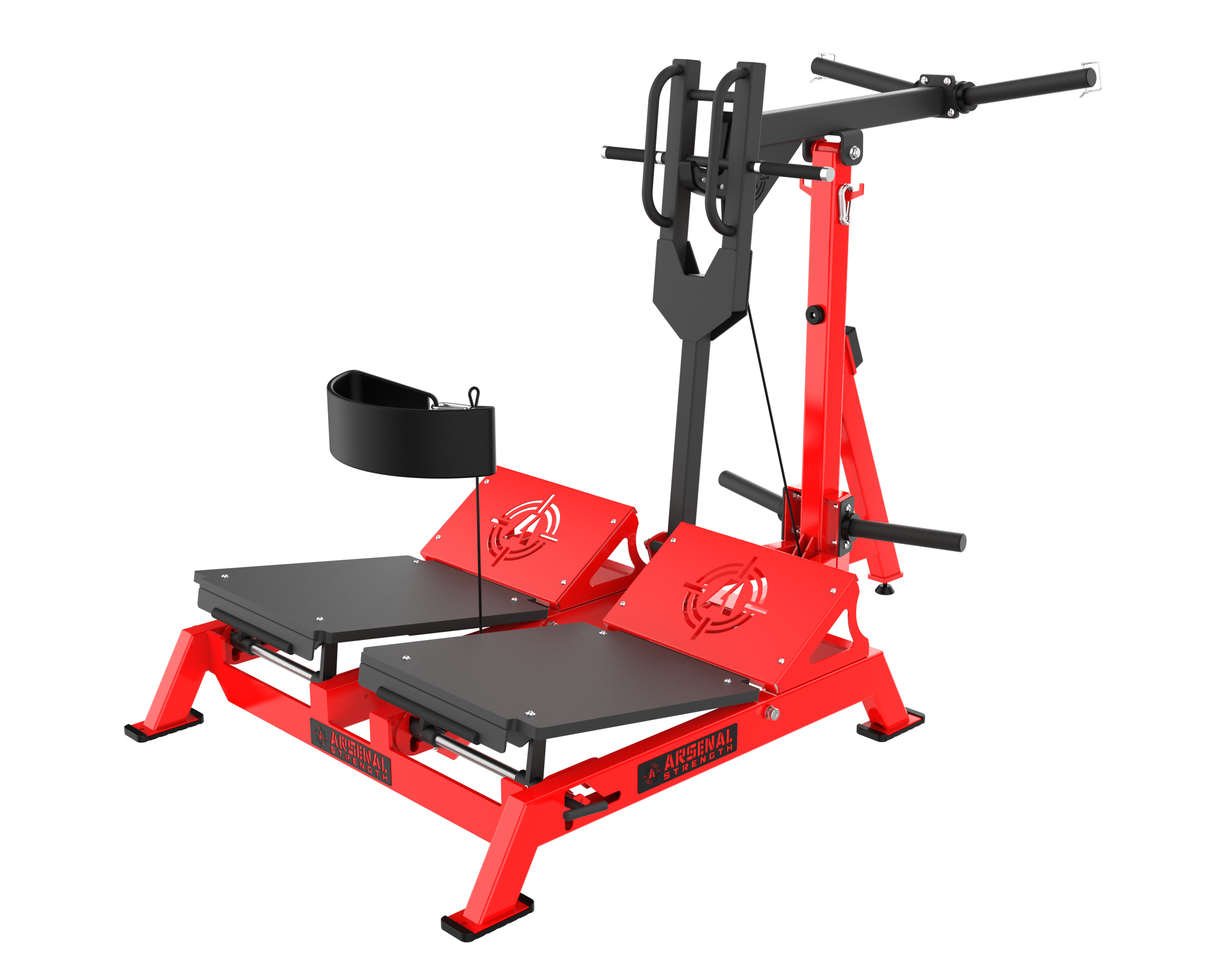 PATENTED Arsenal Strength Reloaded Belt Squat is designed with dual multi angle adjustable platforms to allow users to target specific areas during exercise.