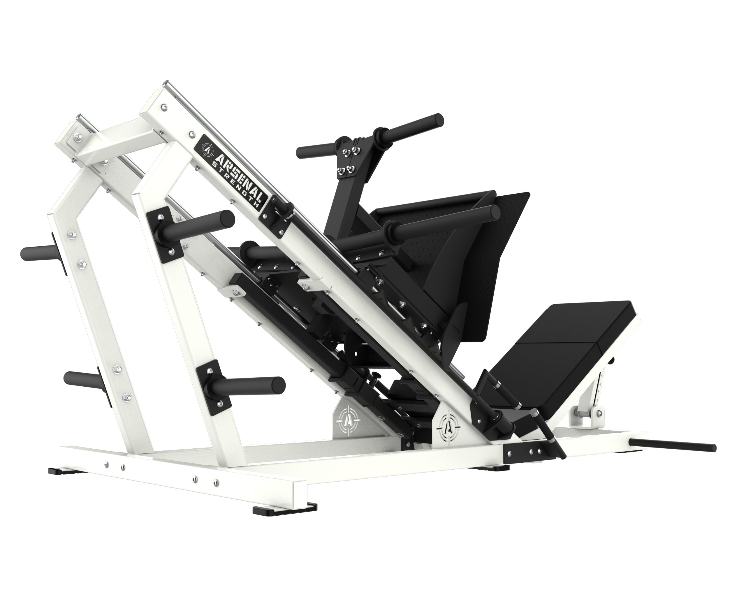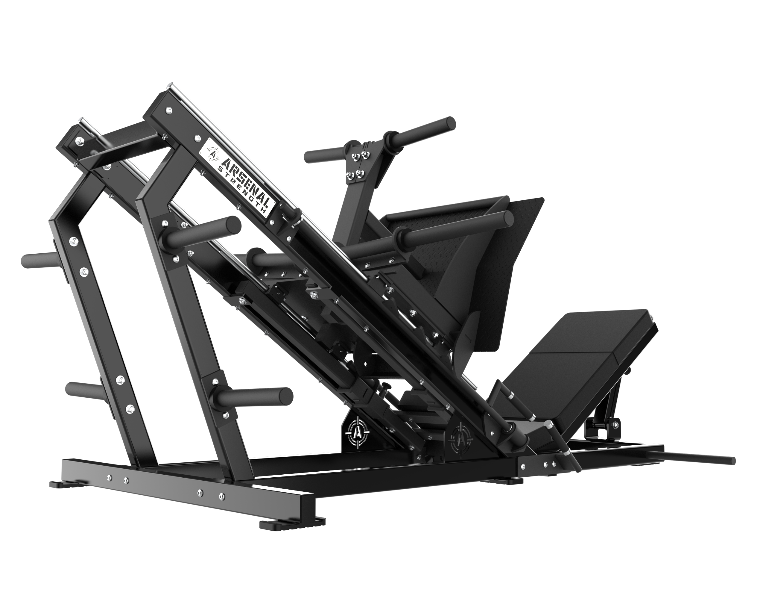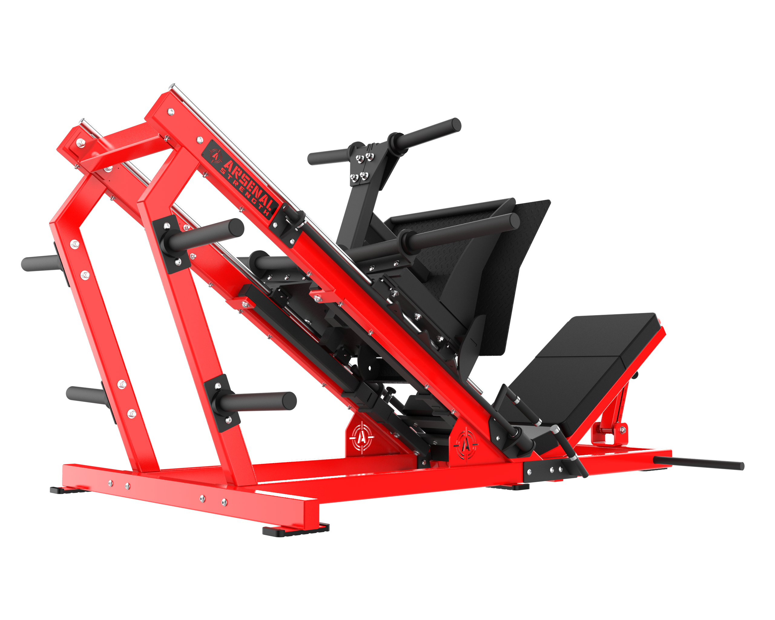The King of Leg Presses. Bow Down. The Arsenal Strength Reloaded Linear Leg Press is heavy duty and cannot be compared. This Leg Press holds over 2,300lbs, so you’ve got enough weight to work up to on your sets.