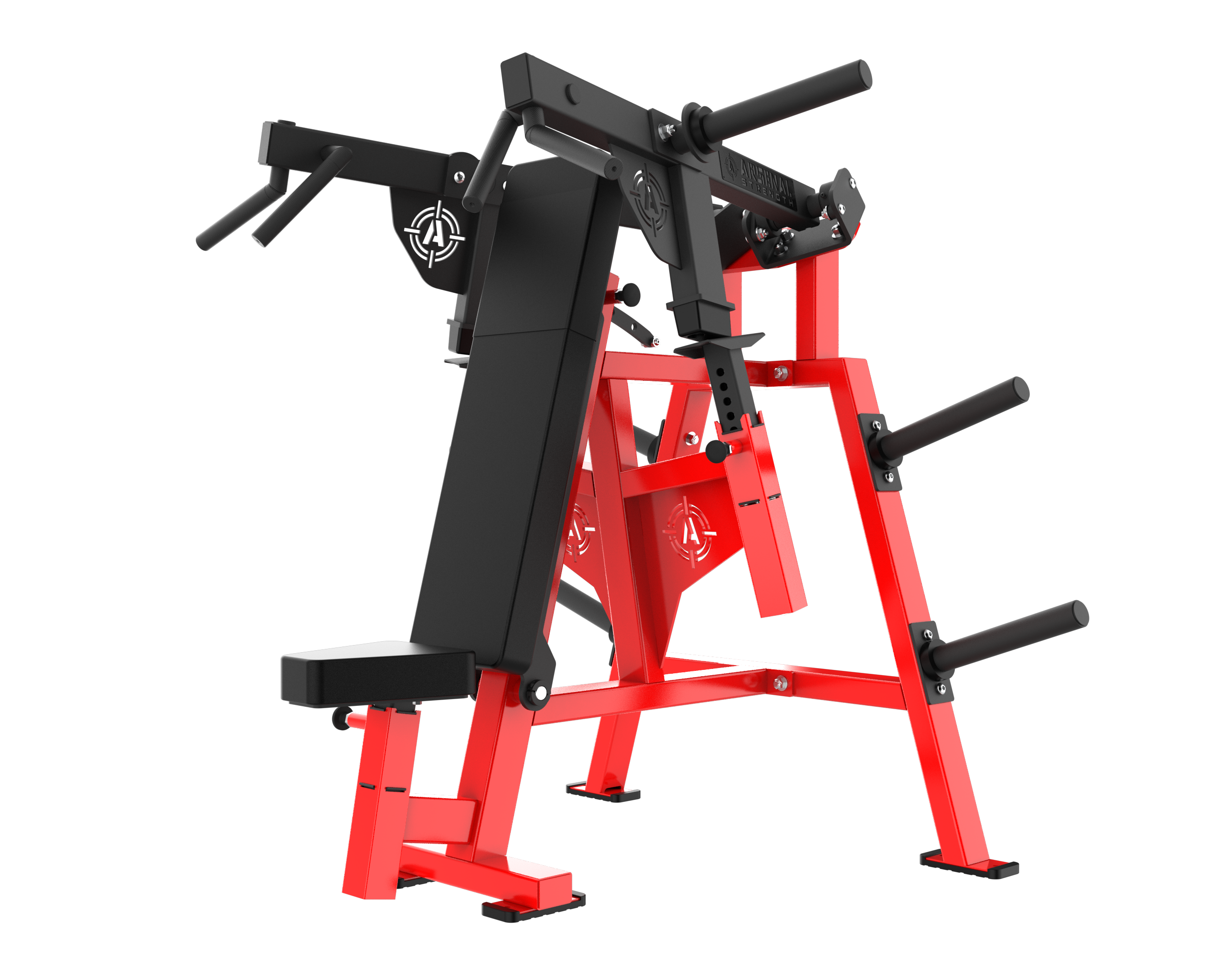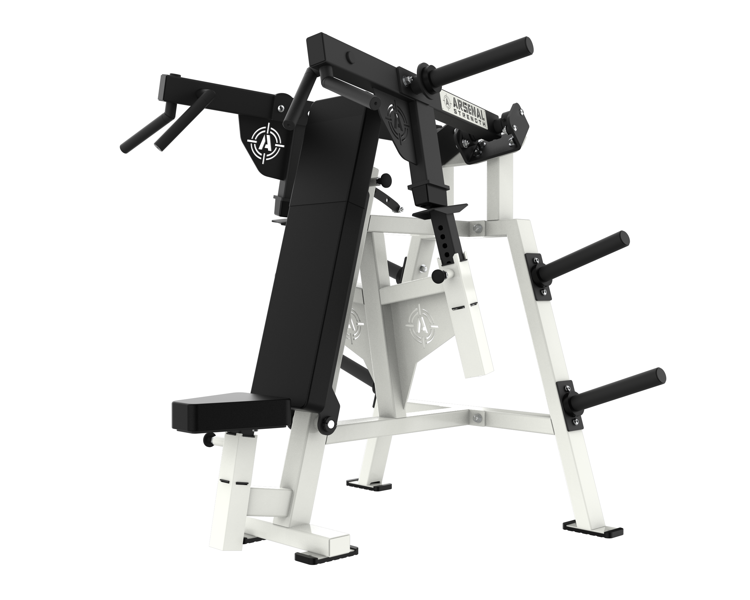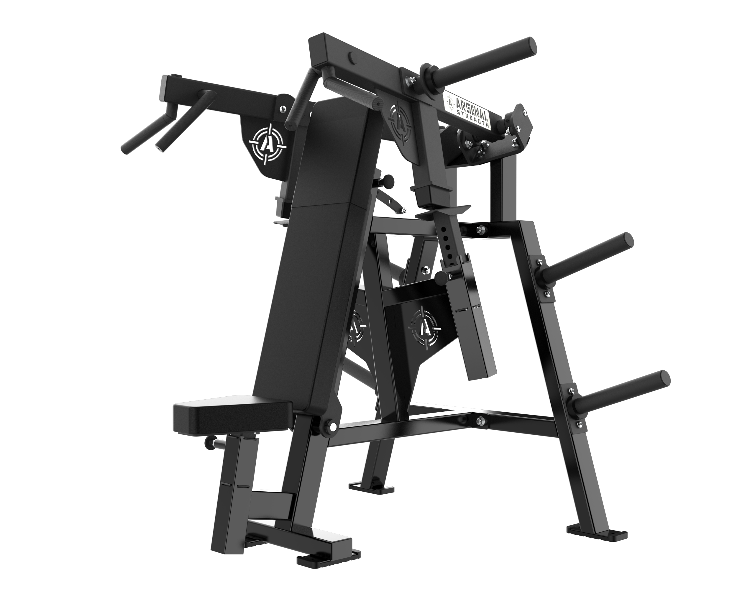 The Arsenal Strength ReLoaded Shoulder Press features multiple knurled grip options for exercise variability. Adjustable seat position and gas assisted adjustable range limiters allow each user to find their proper fit in this piece.
